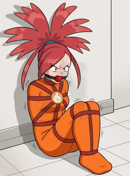 격투: fighting type, fighting symbol, red bodysuit, orange harness