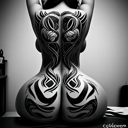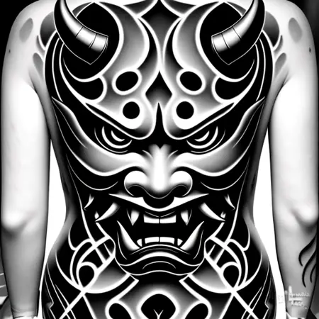Create a Hannya mask tattoo on a woman's back