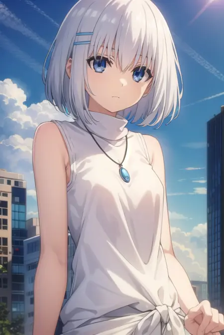 origami tobiichi, 파란 눈, 단발, 학교 유니폼, 흰 머리, 헤어 클립, 헤어 핀,