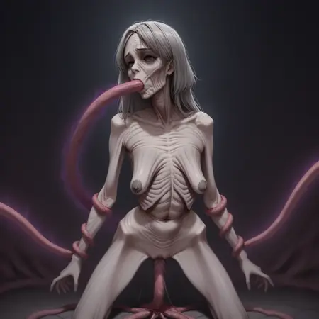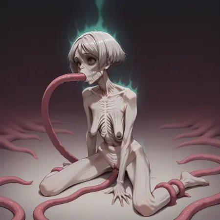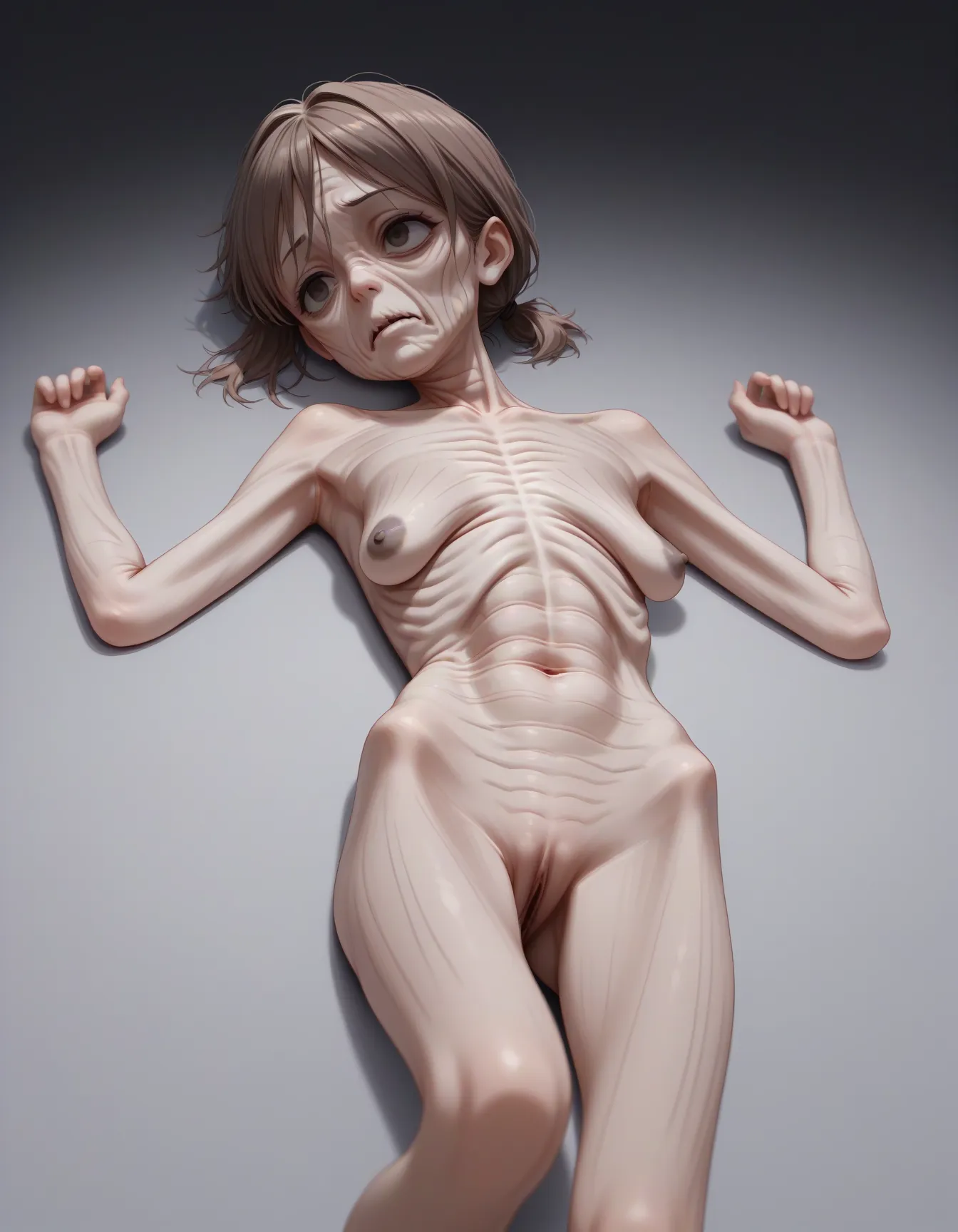 after_energy_drain, wrinkles body, ribs, slender,sagging breasts