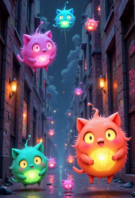 Wacky Wiskerballs effortlessly turns everyday scenes into whimsical, colorful, and irresistibly adorable artworks in flat, 3D, and delightful 2.5D styles. Using the keyword "WackyWiskerballsDaal", your images will bloom into charmingly plump, floating furballs guaranteed to brighten anyone's day. Achieve excellent results at weights from 0.5 to 1.5, with ideal charm and style adherence at 1.0. Lower weights allow more of the original image through, while higher strengths will push your images toward playful abstraction and exaggerated cartoonish delight.