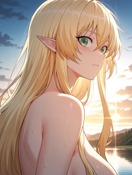 god_elf,pointy ears,green eyes,blonde hair,long hair,