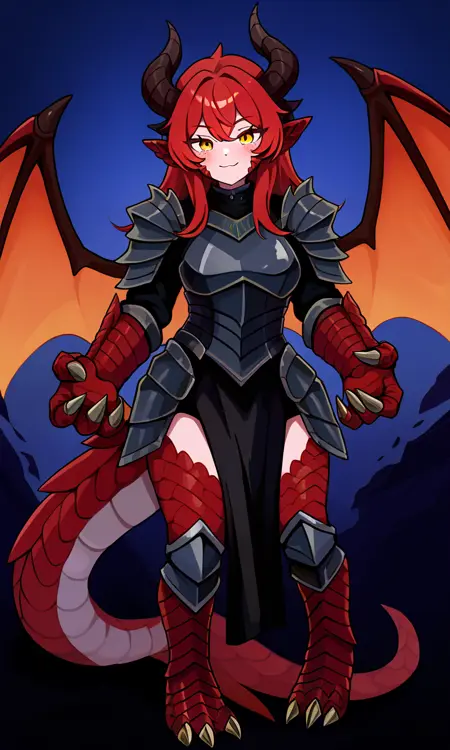 dragon (mge), dragon girl, reptile hands, dragon horns, dragon wings, dragon tail, dragon ears, reptile feet, cheek scales