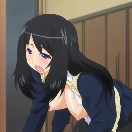 Akari Ochi, Long black hair, Spiky Bangs, Blue eyes, Big Breasts, extraordinary beautiful woman, attractive woman, sensual body, voluptuous body