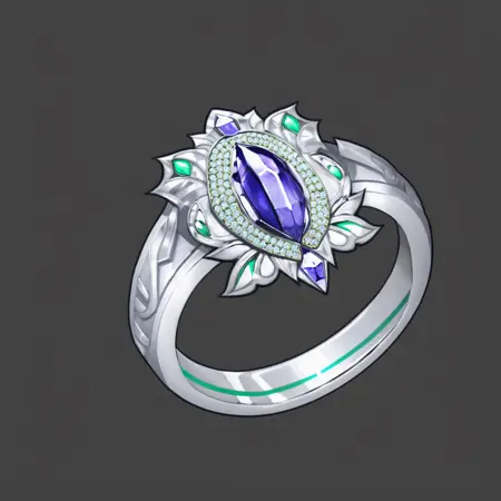 这是一个游戏资源向LoRA模型,可生成镶嵌宝石的戒指,复杂程度由关键词决定。