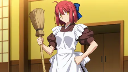 maid, maid apron, apron, white apron, kimono, brown kimono, japanese clothes, wa maid, puffy short sleeves,