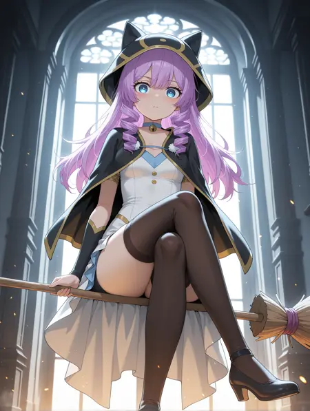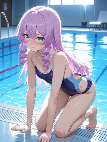 goddess_of_magic,purple hair,drill hair,blue eyes,long hair,petite,