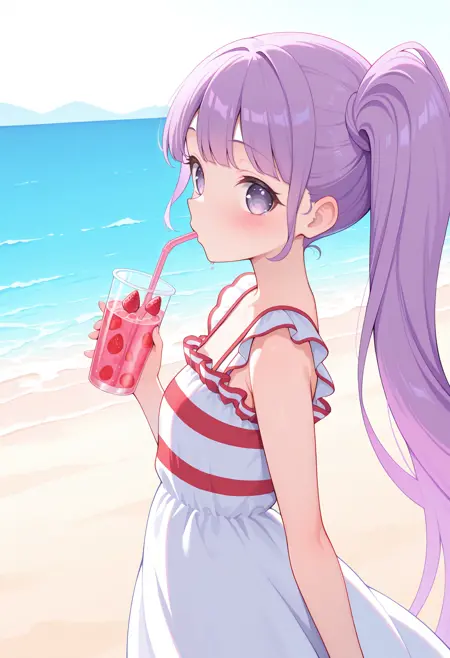 - pparanon, purple hair, side ponytail, very long hair, purple eyes,