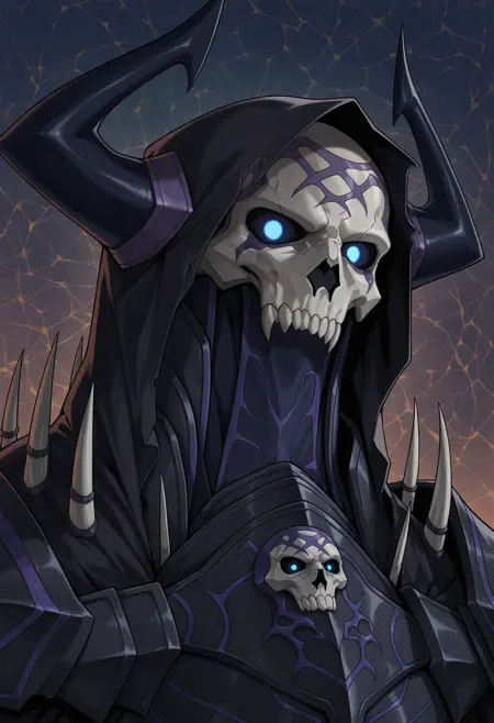 触发词: king hassan, mask, horns, blue eyes, glowing eyes, no pupils
