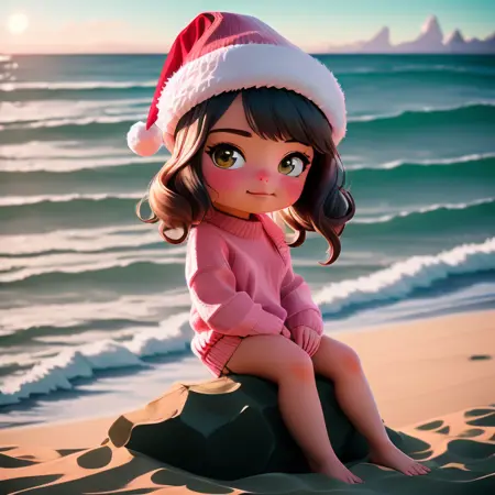 关键词是海边摄影,圣诞帽和处男杀手毛衣