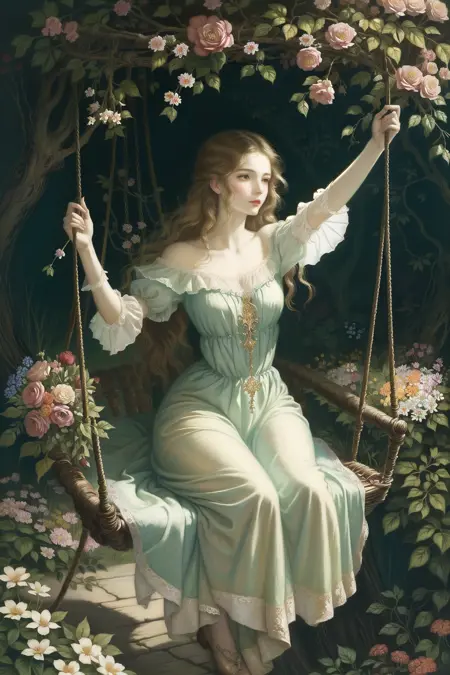 Trained on 195 HD images with heavily curated tags of Arthur Rackham's golden age illustrations.