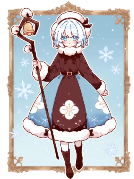 CTCR, CTCR Def, 1girl, fur-trimmed dress, two-tone dress, fur hat, long sleeves, brown boots