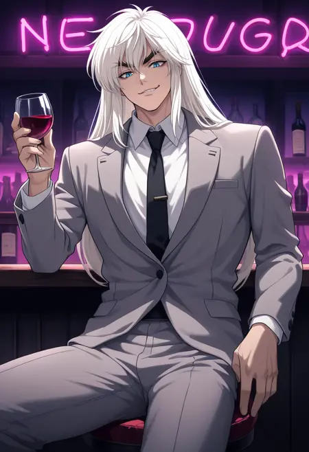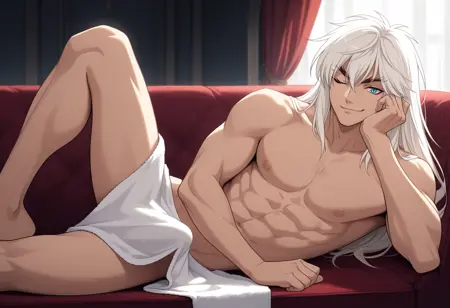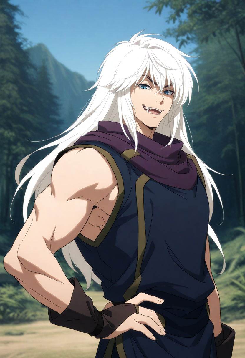 neider, 1boy, 白发, 蓝眼, 长发, 竖瞳, 浓眉。