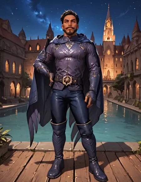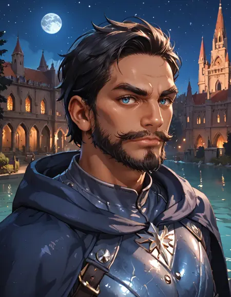 dav_viago, 1boy, black hair, short hair, dark skin, beard, mustache, blue eyes