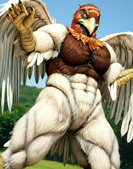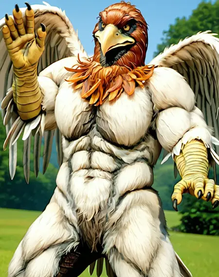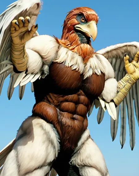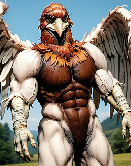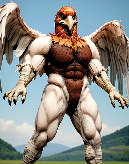 このLoRAのプロンプトは(Eagle_Mutant, Kamen Rider Black, muscular, eagle, )です。たまにチェックポイントが番組名をプロンプトとして認識し、メインキャラクターを作ろうとするため、関連するプロンプトはネガティブプロンプト領域に記入してください。