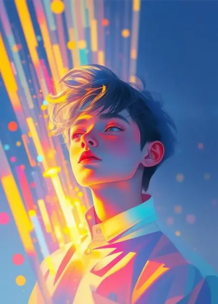 better presentation if use words: serene/peaceful/dreamy/dreamlike/pastel/vibrant/glittering etc