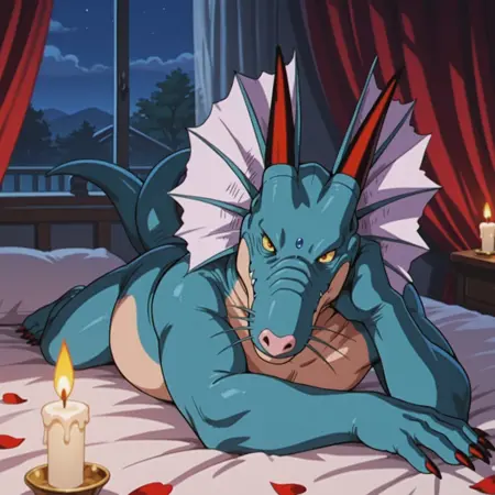 可选: 野性,肥胖,蓝色额头宝石,动漫截图//为提高准确性,请将“肚脐,尾部尖刺”加入负面词。
