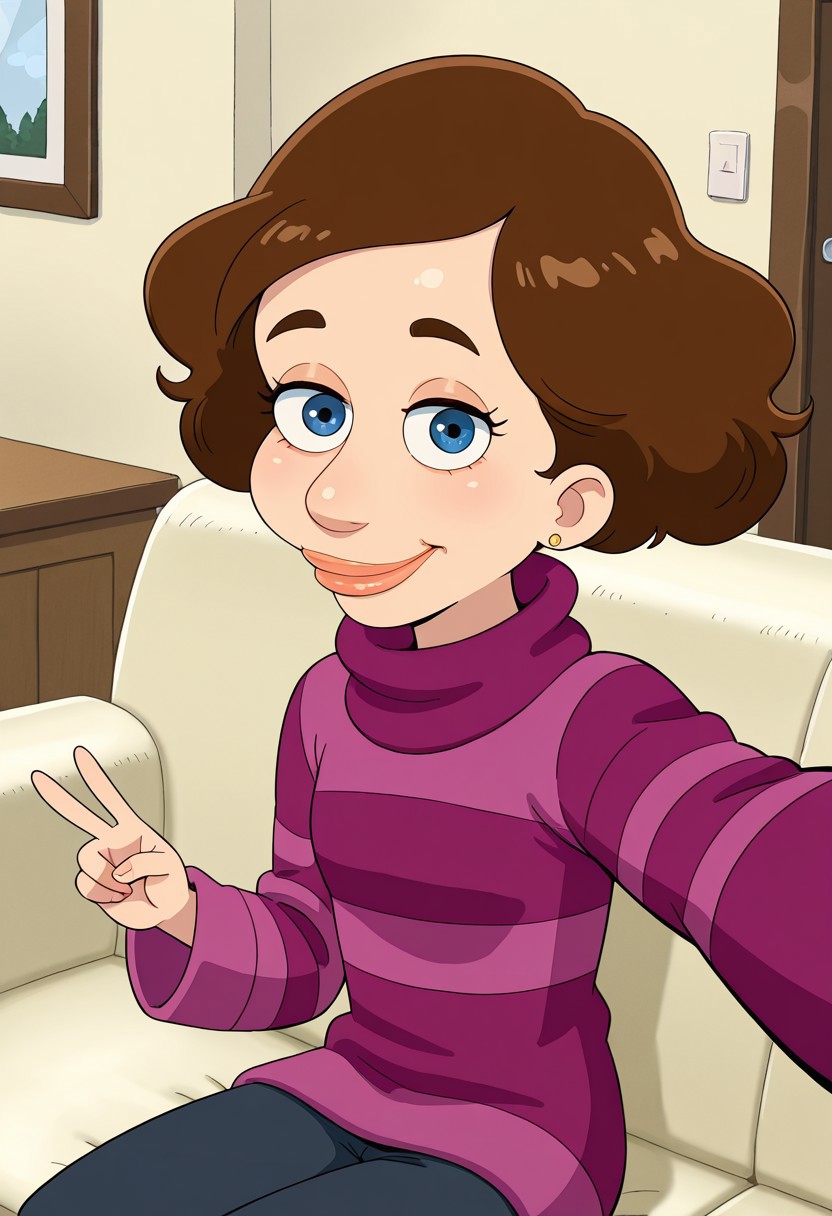1girl, Solo, Bernie_BM, 薄い肌, 青い目, 濃い茶色の眉, ボリュームのあるウェービーなボブカット, 短い髪, 濃い茶色の髪, 黄色のイヤリング