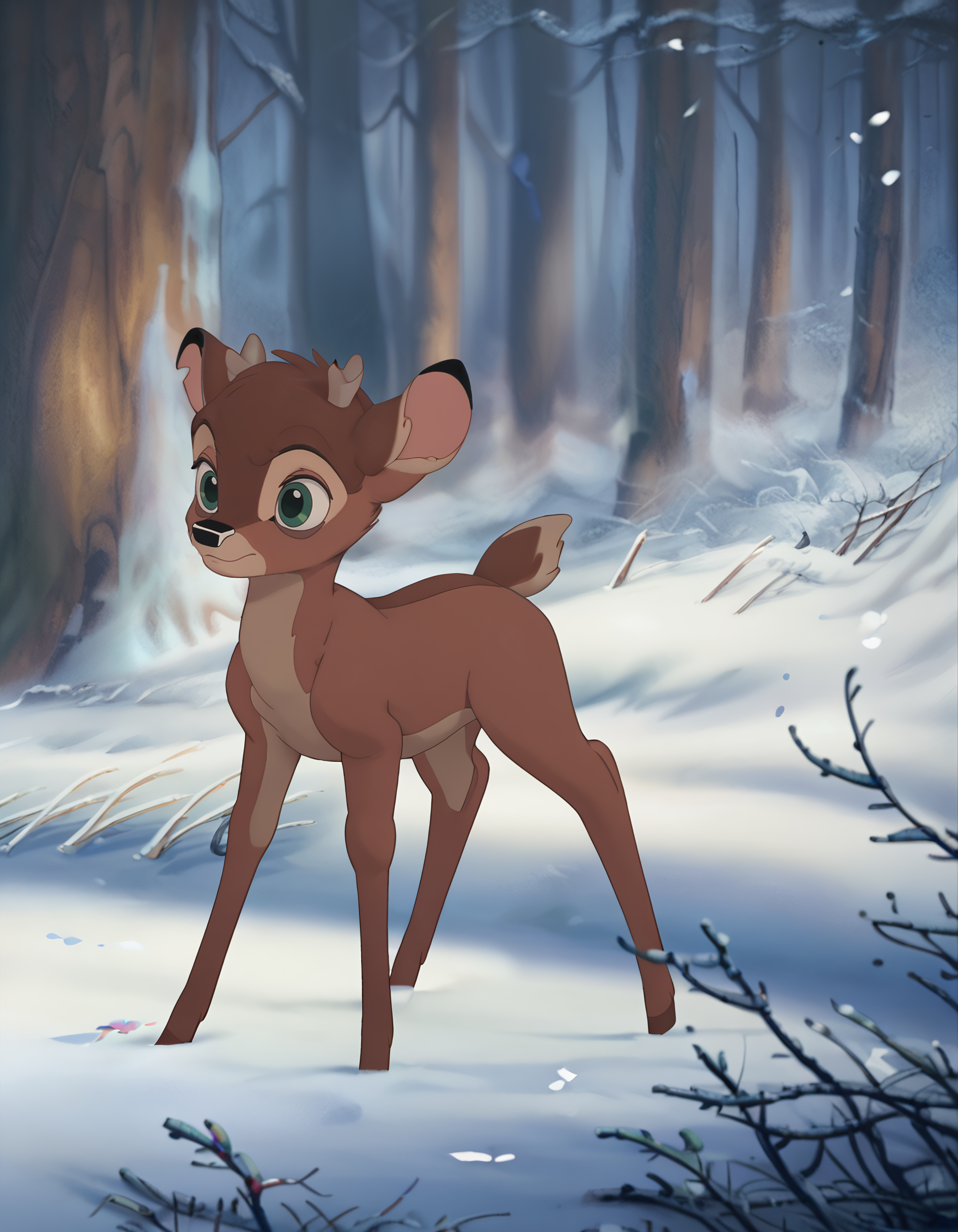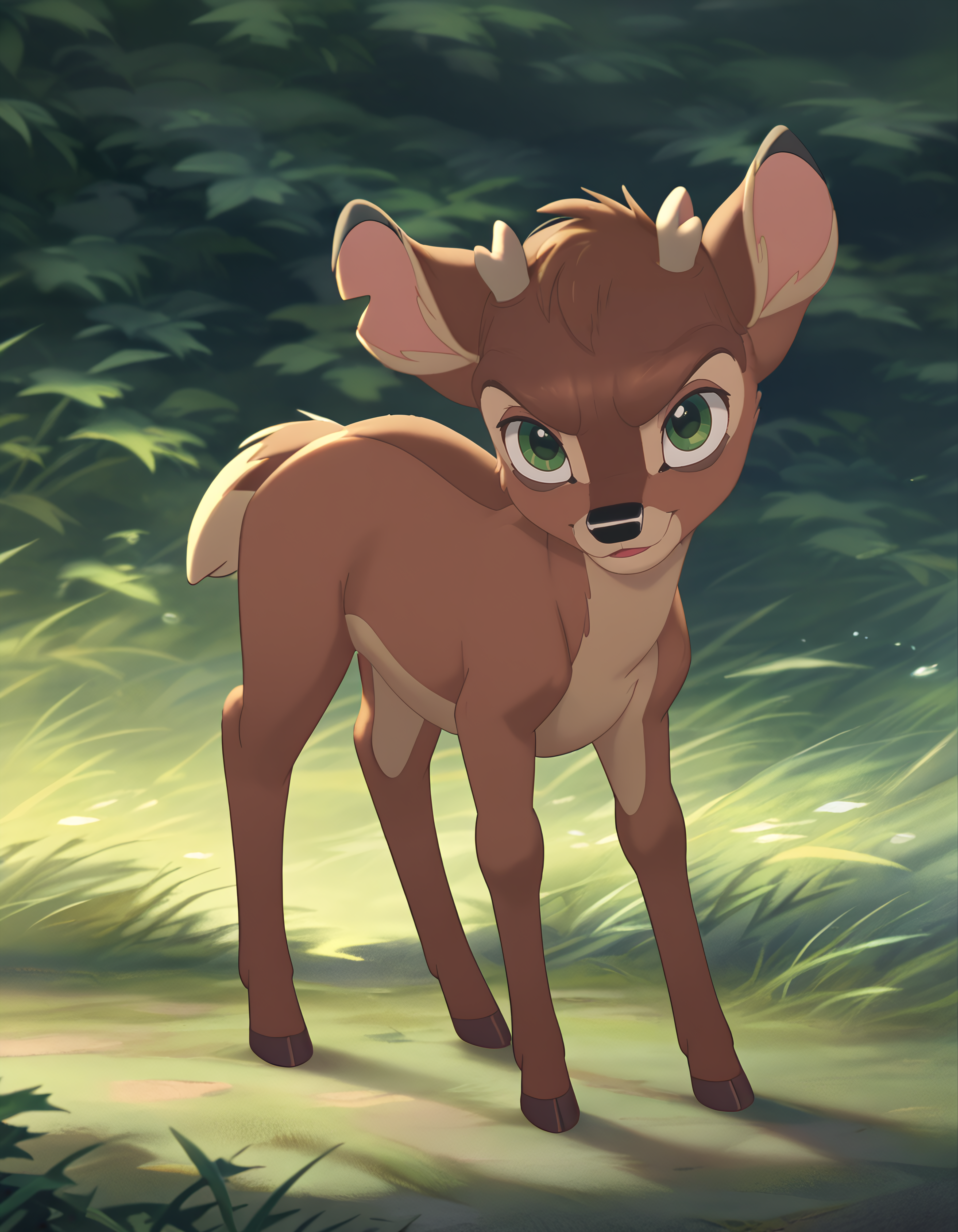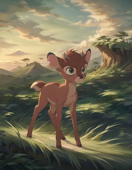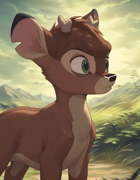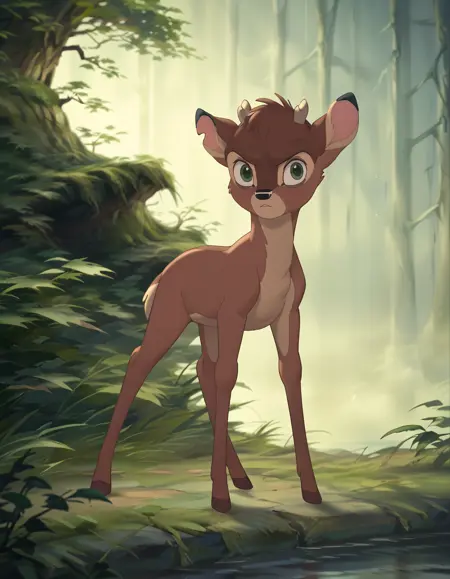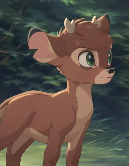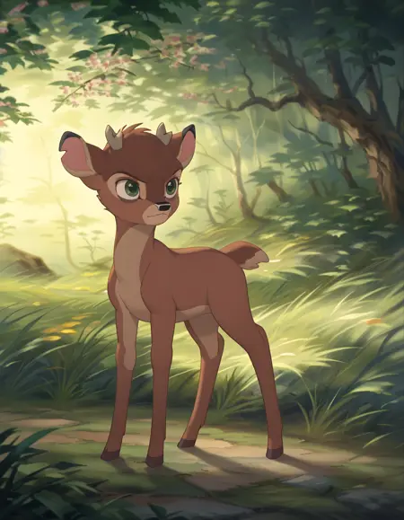 Ronno: Bambi's archenemy, he is also a fawn. Antipathetic, rude and spiteful, he rudely teases Bambi and even tries to defeat him in combat, but always fails; he had previously appeared in the first film as an adult deer, in which he tried to steal Faline from Bambi, but here he does not seem to have any feelings towards Faline. In the original version he was voiced by Anthony Ghannam.
