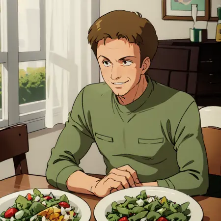짧은 머리, 갈색 머리, 검은 눈, 수염,