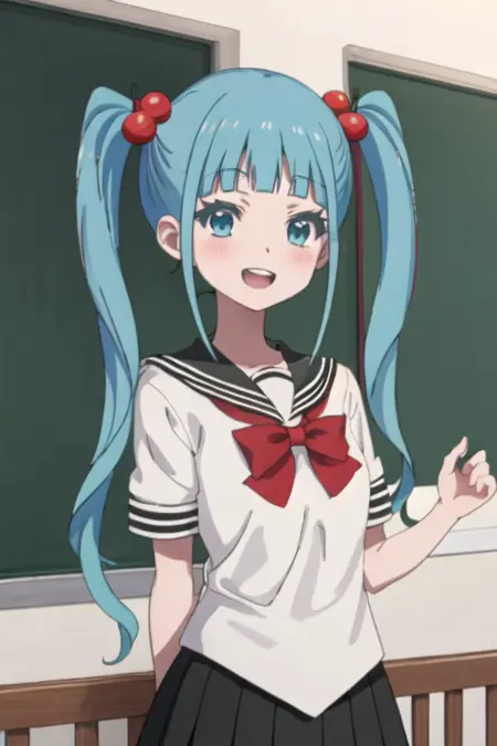 触发词为 nijimi_anazawa_mahoushoujosite,推荐标签为:best quality, masterpiece, highres, solo, {nijimi_anazawa_mahoushoujosite:1.15}, blue_hair, twintails, long_hair, blue_eyes, hair_ornament, hair_bobbles, blush, bangs。