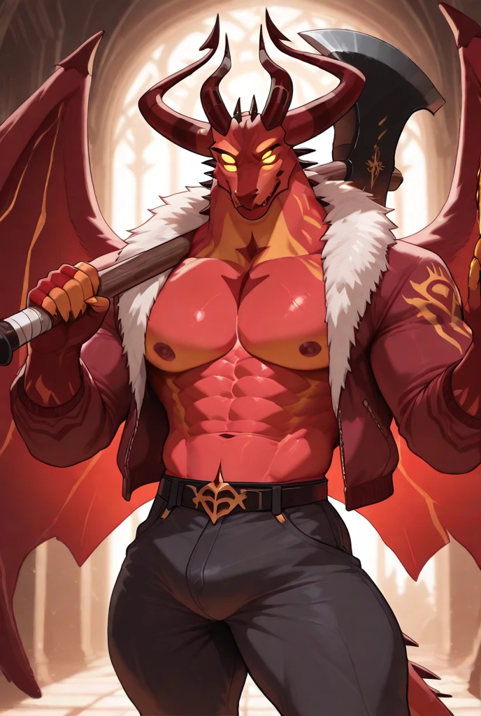 Satan, anthro, 4 eyes,dragon,adult,Tall,yellow eyes,horns,demon,buff,claws,Body markings,Wings,