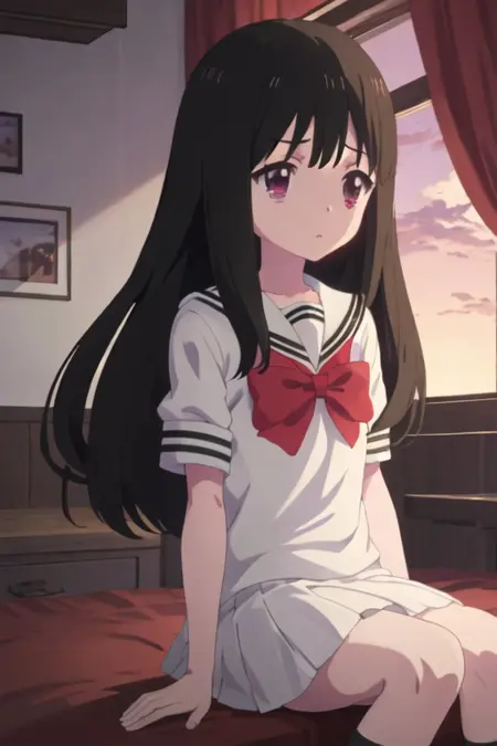 The trigger word is aya_asagiri_mahoushoujosite, and the recommended tags are best quality, masterpiece, highres, solo, {aya_asagiri_mahoushoujosite:1.15}, long_hair, black_hair, serafuku, bangs, purple_eyes, anime_coloring, red_eyes.