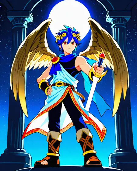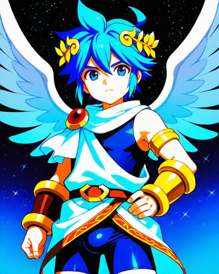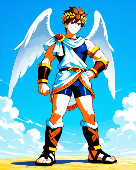 "Soar into the skies with Pit from Kid Icarus: Uprising! This LoRA brings the heroic angel to life in stunning anime style—complete with his laurel crown, bracers, and signature tunic. With his large, majestic wings and boundless energy, Pit is ready to take on any challenge. Get ready to capture the essence of this legendary Skyworld warrior!"