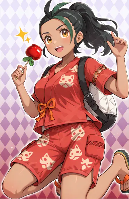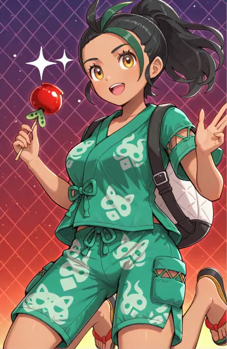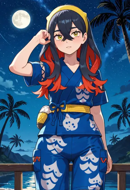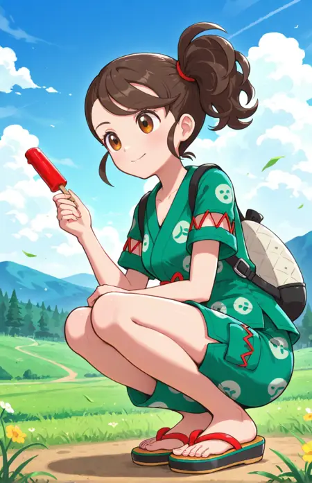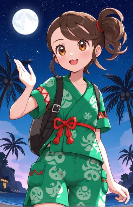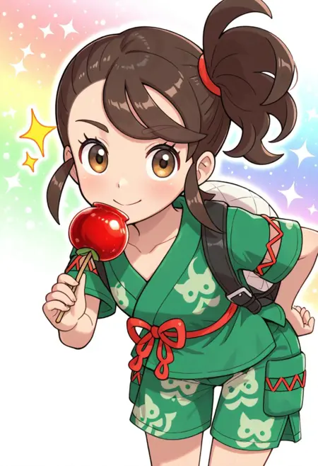tmjuliana, juliana \(pokemon\), brown eyes, brown hair, swept bangs, side ponytail, hair tie