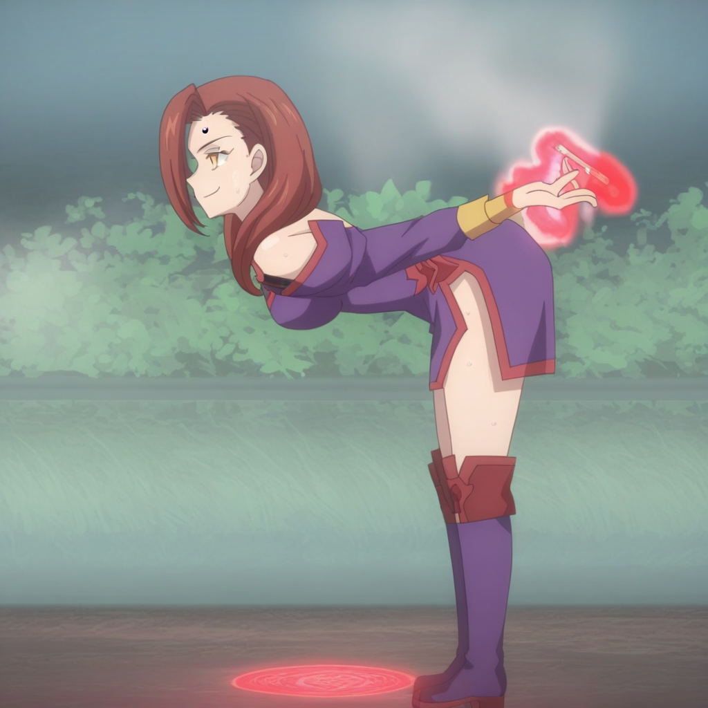 source_anime, Sheila_옷, Sheila_머리, 전체 신체, 슬릿, 어깨 노출, 뒤에서, 불, 마법, 검