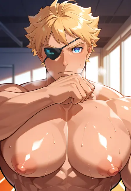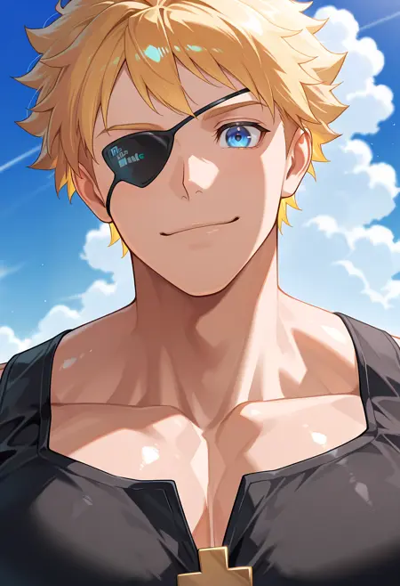 s1n_k1sk3, 金色头发, 蓝色眼睛, 眼罩, 肌肉发达的男性