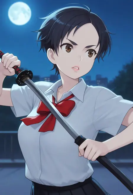 red eyes, katana,