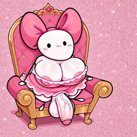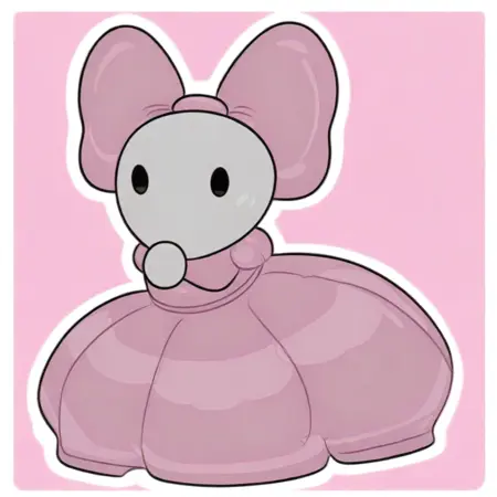 mozelle,人形,女性,单独,白色身体,白色毛发,无嘴,粉色蝴蝶结,粉色连衣裙,无特征手臂,粉色丝带,粉色衣物,矮小身材,点状眼睛,无特征手臂,白色背景,简洁背景