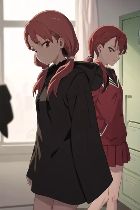 トリガーワードはsarina_shizukume_mahoushoujositeであり、推奨タグはbest quality, masterpiece, highres, solo, {sarina_shizukume_mahoushoujosite:1.15}, red_hair, twintails, red_eyes, long_hair, anime_coloring, serafuku, brown_eyesです。
