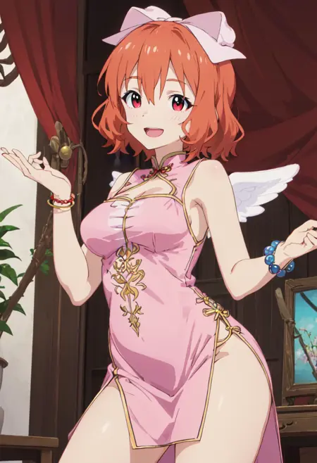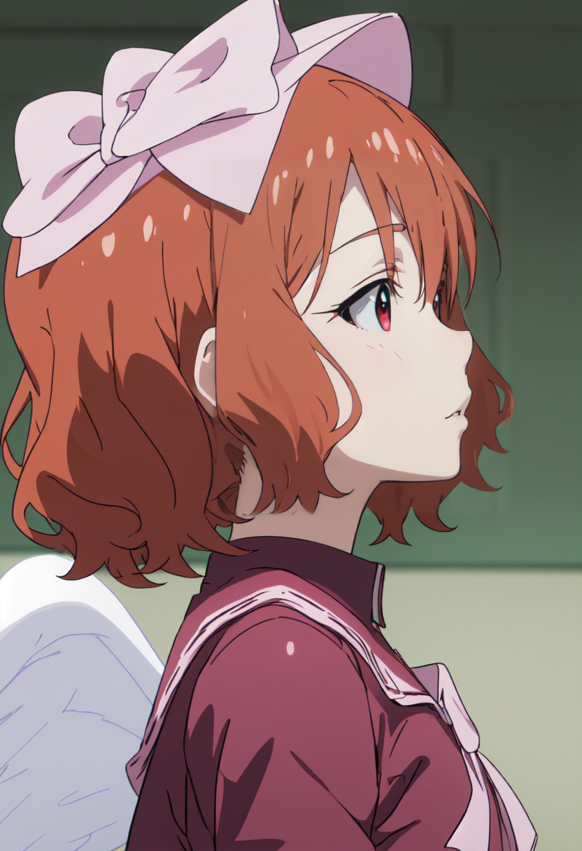 - 经过修剪的角色标签包括:短发、翅膀、蝴蝶结、发带、胸部、棕发、橙发、中等胸部、粉红蝴蝶结、丝带、红眼、天使翅膀。当角色的核心特征(如发色)不够稳定时,您可以在提示词中加入这些标签。
