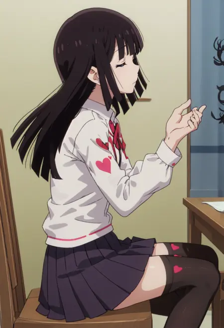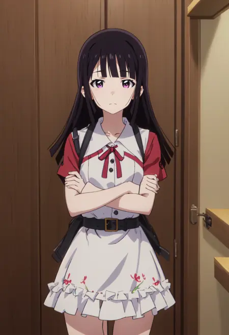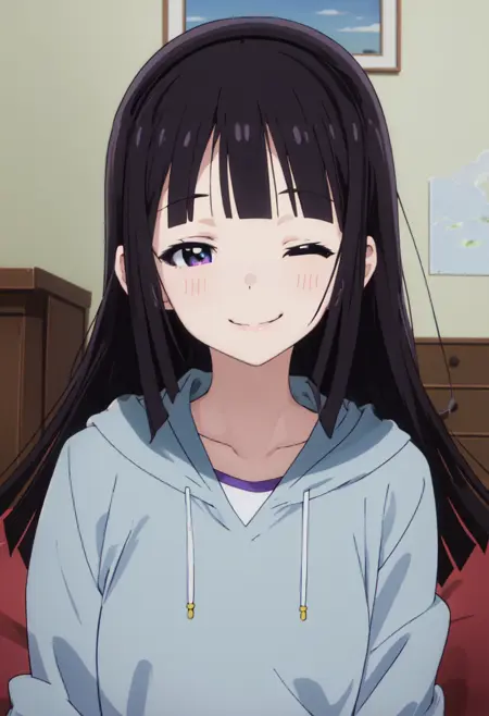 触发词为 mitsuki_kanzaki_imocho,精简标签为 black_hair, long_hair, purple_eyes, blunt_bangs。当某些特征(如发色)不够稳定时,您可以将这些标签加入提示词中。