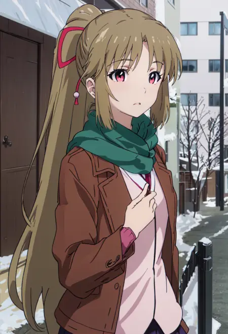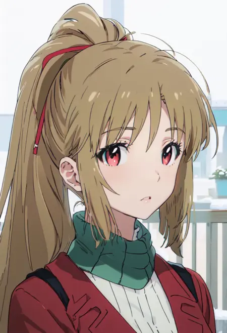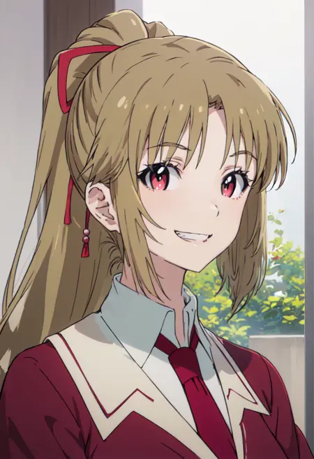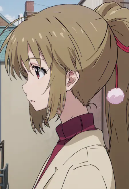 触发词为 yukina_kiritani_imocho,精简标签为 brown_hair, ponytail, long_hair, ribbon, hair_ribbon, red_eyes当某些特征(如发色)在某些时候不稳定时,您可以将这些标签添加到提示词中