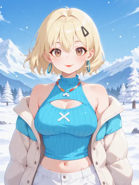 1girl, 금발, 단발, 앞머리 | 눈 사이에 머리카락, 갈색 눈,