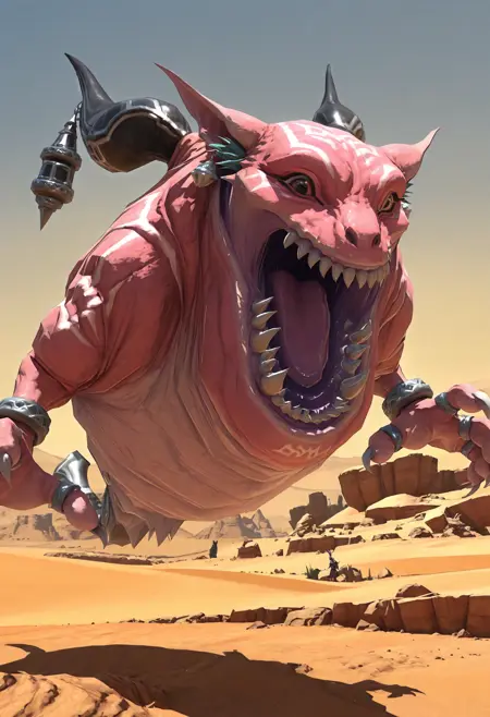 触发词:typhon_(FF)、角、无人类、牙齿、尖牙、张开的嘴、爪子、珠宝、舌头