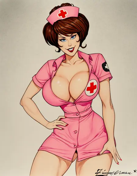 JuliusZimmermanStyle, sketch, traditional media, large breasts, makeup, lipstick,