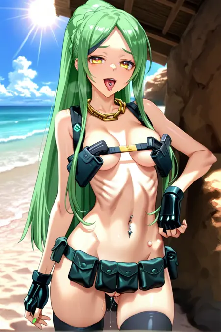 絶命制裁Xの悪役ハッカー女性、舌ピアス付き。プレビュー画像はWAI-SHUFFLE-NOOB vpred 2.0を使用。