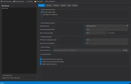 该工具使用队列处理多个视频和图像文件,具备三阶段字幕生成流程(单帧、综合摘要、最终重写),为每个文件生成清晰的.txt字幕和详细.json日志。