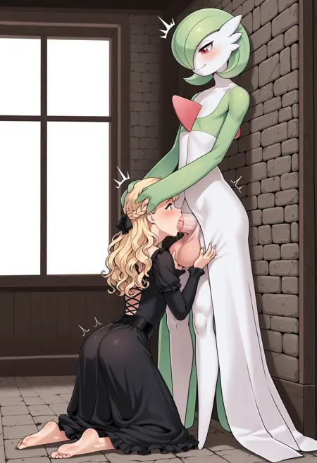 My first ever concept LORA that should help with making images featuring a 'dominant' male Gardevoir. Checkpoints like to either generate a man and have the Gardevoir watch, fuse with the female, and other weird things, so this LORA should help alleviate that. It's not perfect, as this only works with human girls (and femboys).