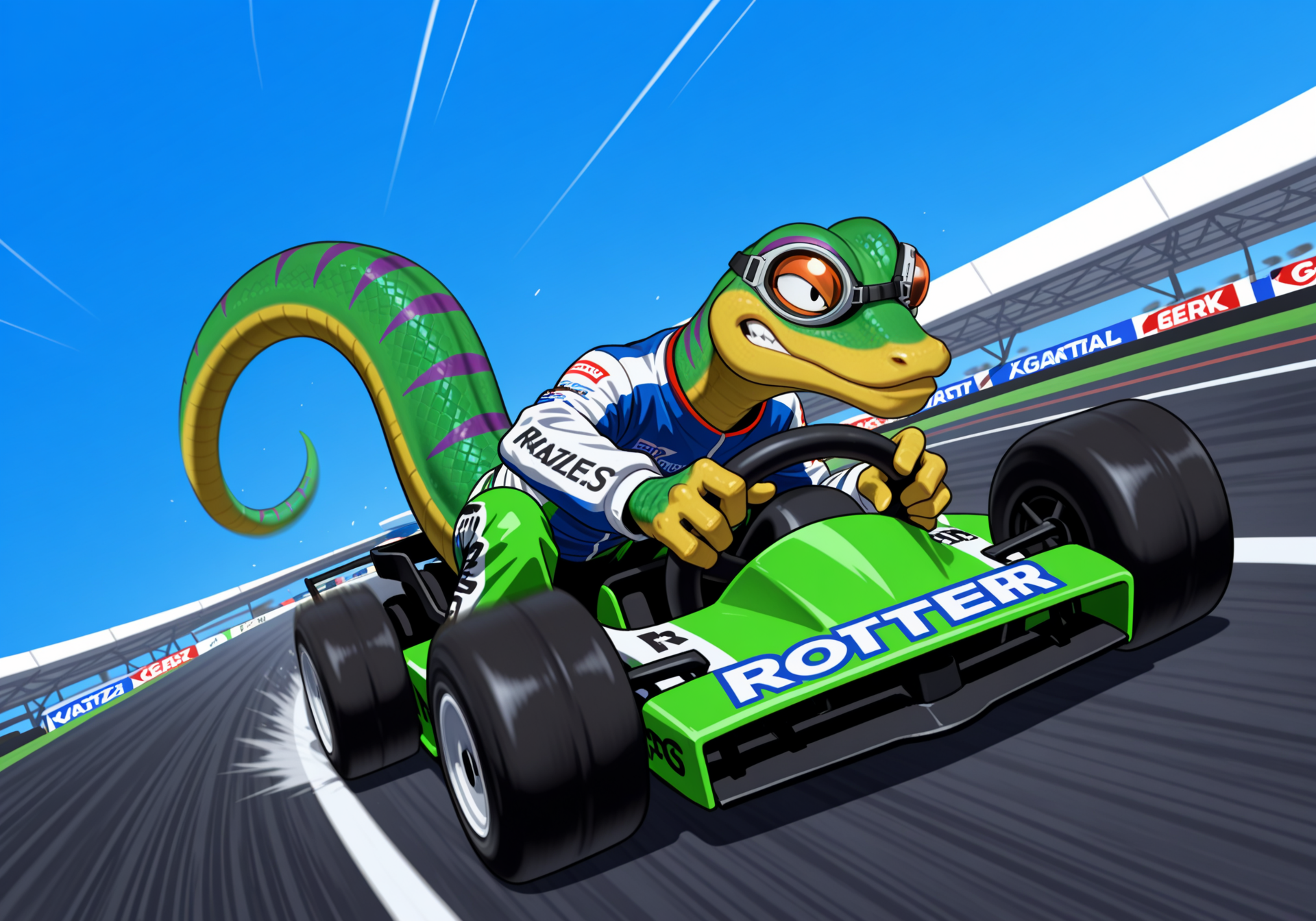 古いプラットフォームゲームに登場するクイッピング・ゲッコー。3DOゲームコンソールの公式マスコットです!
