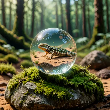 一个神秘的球体,水晶球,描绘出奇妙、幻想且色彩斑斓的场景。