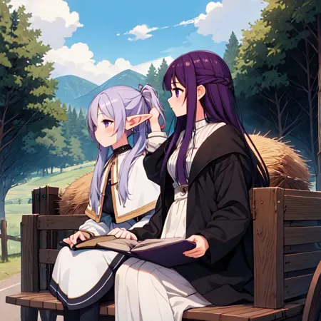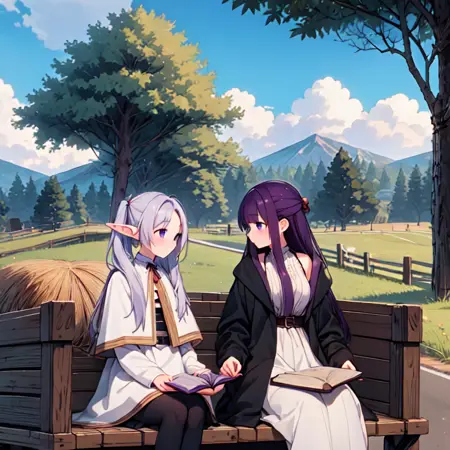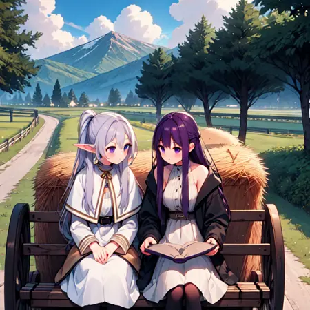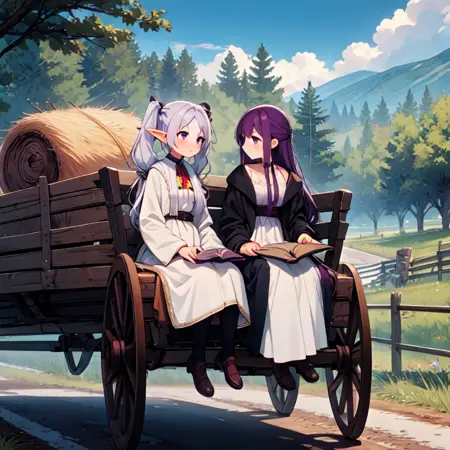 注意:馬を学習させましたが、まだうろうろしてしまうため、断念しました。「乗る」ことで女の子の足を地面から浮かせることができます。干し草が時々シーンを汚すため、「緑の木」「緑豊かな風景」を追加してください。「石畳」が嫌いな場合は、「土の道」に置き換えてください。(ILXL)