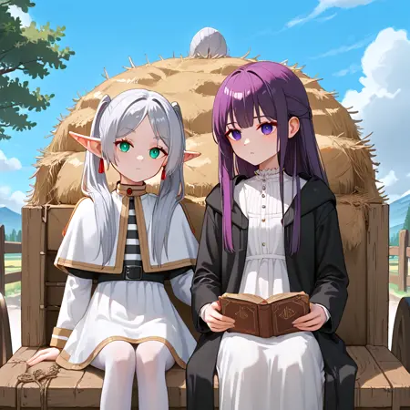 注意:馬を学習させましたが、まだうろうろしてしまうため、断念しました。「乗る」ことで女の子の足を地面から浮かせることができます。干し草が時々シーンを汚すため、「緑の木」「緑豊かな風景」を追加してください。「石畳」が嫌いな場合は、「土の道」に置き換えてください。(ILXL)