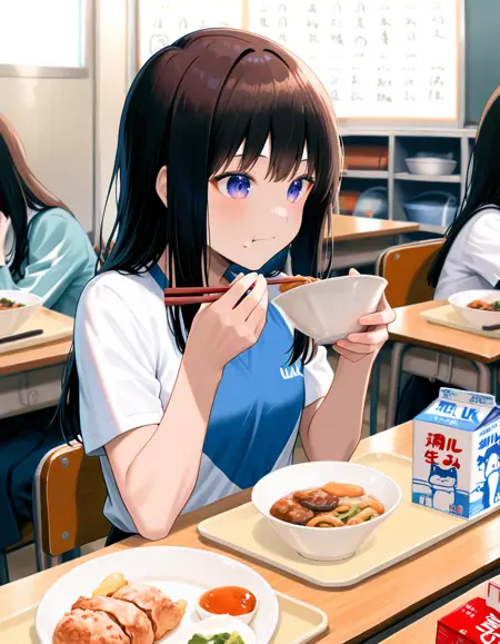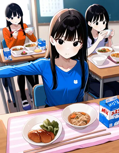 ※ 給食は教室の背景プロンプトと、掃除は教室、廊下の背景プロンプトと併用してください。
