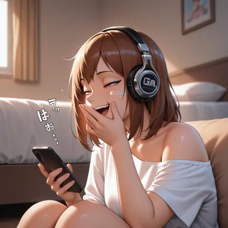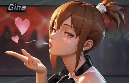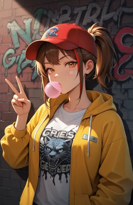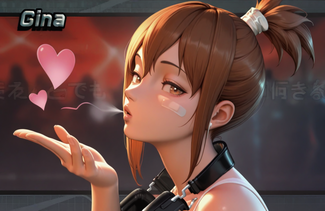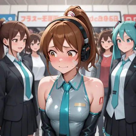 アクセサリー: 頬のバンデイド、首にヘッドホン、