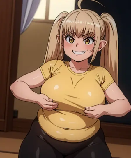 외모 프롬프트 헬퍼: blonde_hair, brown_eyes, ahoge, pointy_ears, plump,